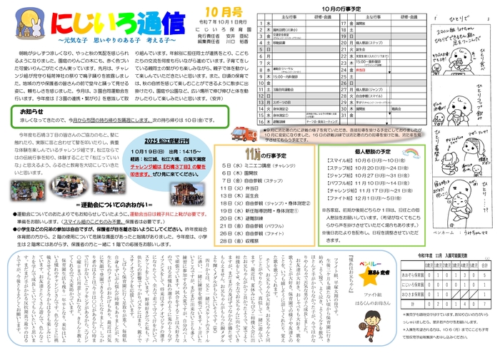 ・延長保育時間 18:00~19:00 300円/回 ※土曜日の延長保育は行っていません