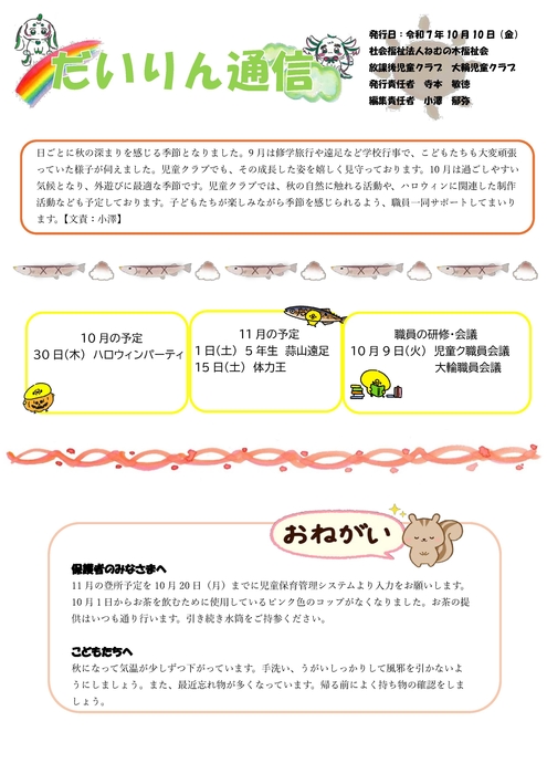 大輪児童クラブ 令和8年度新規入所児童募集のご案内[児童募集について]注目重要NEW